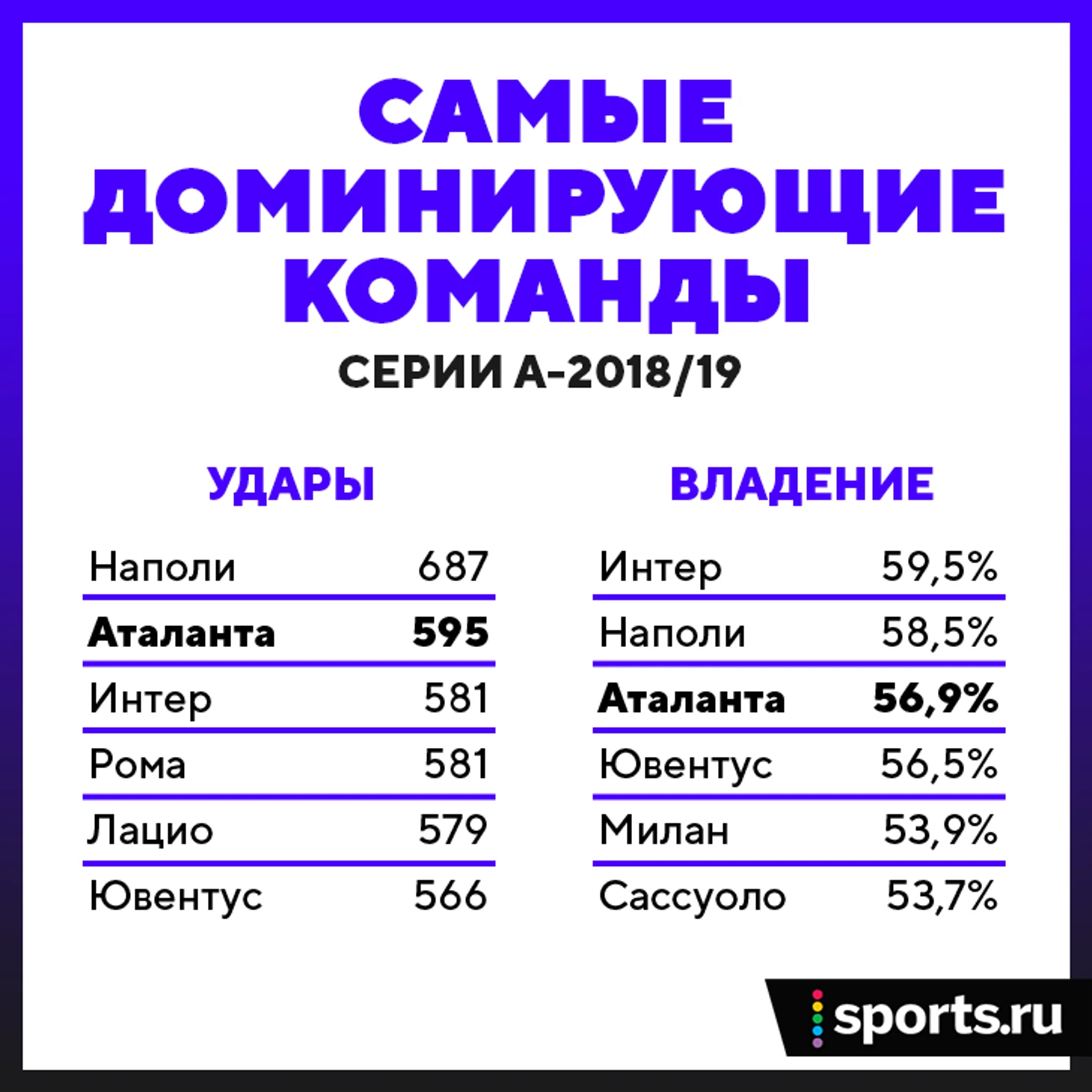Иличичу и Гомесу за 30 – на них «Аталанта» много не заработает. Но в этом сезоне Гасперини уже не так заточен на молодежь – выстрелили только 23-летний Джанлука Манчини (однофамилец уже зовет его в сборную) и Тимоти Кастань (на год старше, его хочет «Наполи»). У Джан Пьеро была обойма из 17 футболистов, а юные Мусса Барроу и Деян Кулусевски (592 и 103 минуты в нынешнем чемпионате) еще получат свое игровое время. «Тренировать – как готовить, – говорит Гасперини. – Если хочешь сделать вкусный торт, нужны правильные ингредиенты. Подбирать их на глаз – приятное занятие. Мне никогда не надоедает».Результатом удачного подбора стали 77 голов – больше в серии А в этом сезоне не забил никто. И эти голы – следствие доминирующего футбола, «Аталанта» всегда стремиться играть с мячом. Еще одно следствие – удары по воротам. Чаще команды Гасперини (595) бьет только «Наполи» (687). Соперникам редко удается спастись – после неудачного старта (четыре поражения за восемь туров) «Аталанта» не забила только в трех матчах из 30, с «Торино» (0:2), «Интером» (0:0) и «Эмполи» (0:0). В створ ворот «Эмполи» бергамаски нанесли 20 ударов – вратарь Бартломей Дронговски побил рекорд серии А по количеству сэйвов.