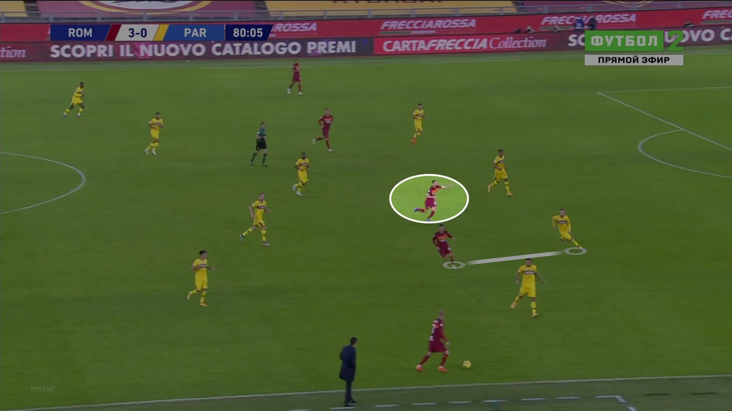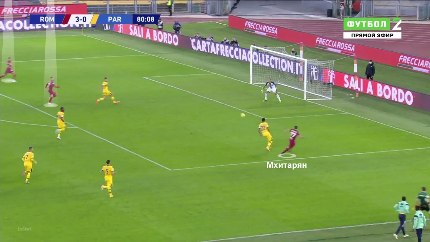 Подборы – еще один тип эпизодов, где свобода Мхитаряна и его умение читать игру решают. «Рома» строит игру через большого нападающего, поэтому таких ситуаций возникает достаточно. Свой самый красивый гол («Парме») Генрих положил именно в такой ситуации. Он всегда сконцентрирован, читает подборы – и часто оказывается в более выгодной позиции, чем соперники: