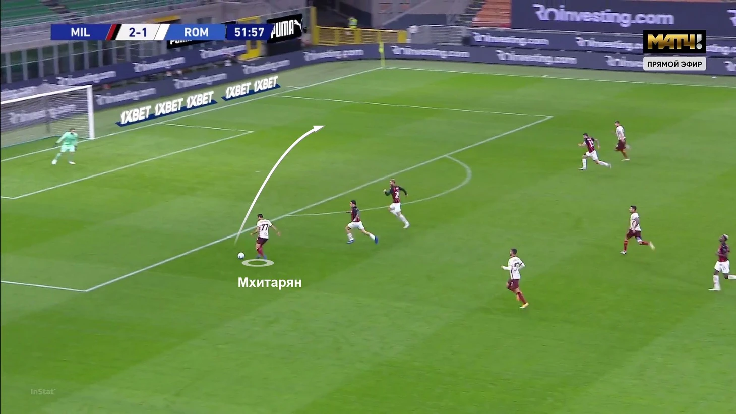 В том, насколько эффективно команда пользуется этими шансами – огромная заслуга Мхитаряна. Именно он связывает команду при быстрых переходах – прямо и косвенно. С «Юве» и «Беневенто» были моменты, когда Генрих подхватывал мяч на своей половине и доводил его до штрафной соперника. Это совсем радикальные эпизоды – обычно дистанция поскромнее, но он определенно может тащить мяч на пространстве.