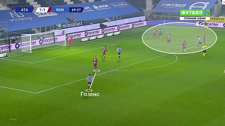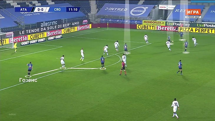 Важно понимать, что они ничего не гарантируют. Но при прочих равных: в смелой команде с тройкой центральных у фланговых защитников будет больше шансов именно для завершения, чем в похожей по смелости команде с четверкой. «Аталанта» всегда играет с тройкой – и на самом базовом уровне Гозенс от этого выигрывает.