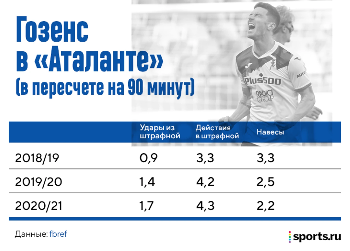 Система «Аталанты» дает ему фундамент – благоприятные ситуации для открываний, но дальше уже включаются его индивидуальные умения. Главные из них – умение выскакивать из слепой для оппонента зоны, исполнение ударов головой и чтение навесов (хорошо знает, какой подачи ожидать, и лучше, чем соперник, предугадывает траекторию).