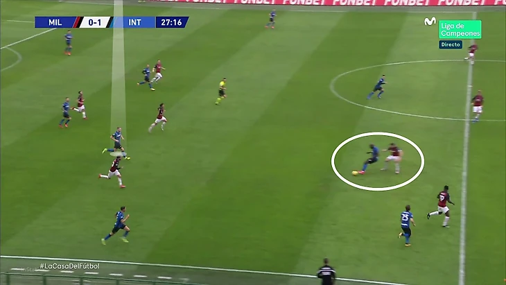 Главное следствие тренировок у Конте – правильное движение. Милан никогда не оставляет партнеров без поддержки, когда нужен рывок. Да, при получении мяча на чужой трети он не очень опасен, но делает нужные рывки и как минимум отвлекает на себя внимание.