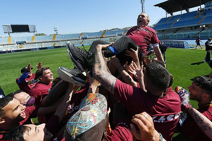 Тренеру «Салернитаны» Фабрицио Кастори 66 лет. В профессии он с 1980-го. Кастори – рекордсмен Серии B среди действующих тренеров, у него 593 матча в дивизионе. Он единственный тренер, который прошел все девять ступеней системы футбольных лиг Италии. В Серии А Кастори провел лишь один сезон – с «Карпи», но успех с «Салернитаной» Фабрицио не считает главным достижением в карьере. «Я очень рад, как и каждому повышению, – говорит тренер. – Для меня это – уже десятое, я добивался цели везде. Когда мы с «Карпи» вылетели из Серии А, я пообещал, что вернусь. Я готов, очень жду старта следующего сезона».