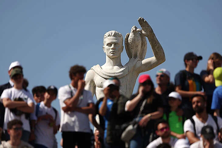 Абсолютно всегда в этом ряду упоминается стадион Пьетранжели – третий по размеру, но самый легендарный корт комбинированного турнира в Риме, в этом году проходящего в 80-й раз. Корт, вмещающий 3 720 зрителей и вдохновленный древнегреческой архитектурой, – часть спортивного комплекса «Форо Италико», важнейшего и зловещего памятника итальянского фашизма. Автор площадки – Костантино Костантини, также спроектировавший Водный стадион на «Форо».