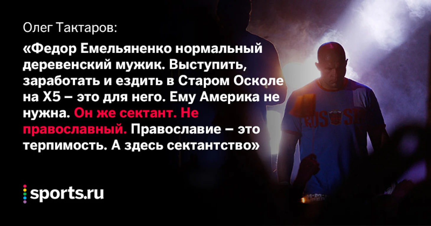 – За две-три недели до его поражения от Антониу Силвы (12 февраля 2011 года – Sports.ru). Поехал к руководству UFC и просил за него, не имея с ним контракта. К этим людям никто попасть не может. И просить их можно только раз в жизни. Я выбрал помощь Федору. Такой тупизм, конечно. Но у меня постоянно такое. Был случай, когда ответил олигархам. Мой друг работал у них в охране, жил в Штатах. И они такие: «Вот, Саня твой уже американец. Уже не наш». Говорю: «А наш – это когда ты жопу поднял, только если два лимона упало?» Их это оскорбило. А подлизал бы – до конца жизни в шоколаде был бы.