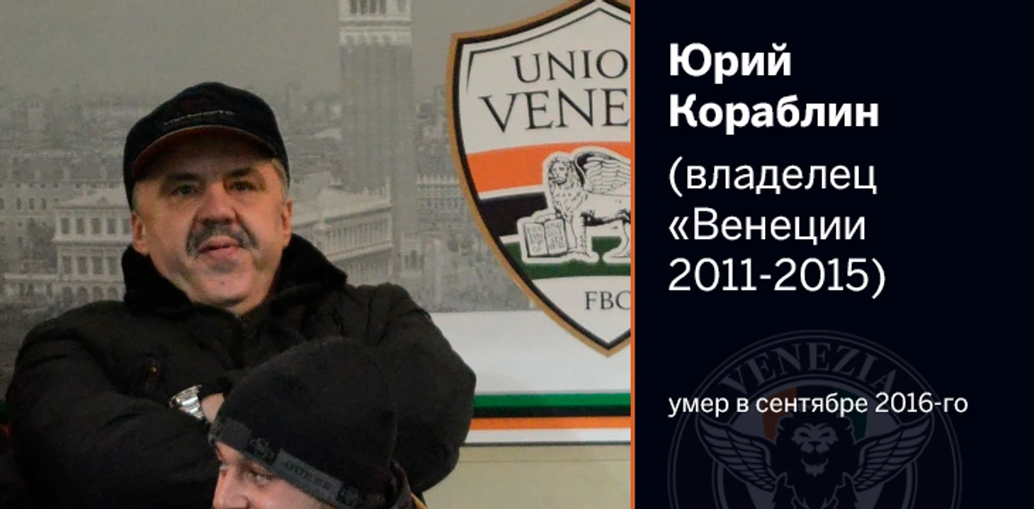Последние надежды связывали с русскими. В 2011-м бывший мэр Химок Юрий Кораблин бесплатно приобрел права на клуб, оплатив только лицензию на участие в серии D – 400 тысяч евро. Итальянские медиа называли инвестора новым Абрамовичем, королем недвижимости и, подчеркивая статус, человеком, который поддержал Ельцина на президентских выборах. Кораблин обещал построить новый стадион, вложить в «Венецию» 150 миллионов и вывести в серию А.