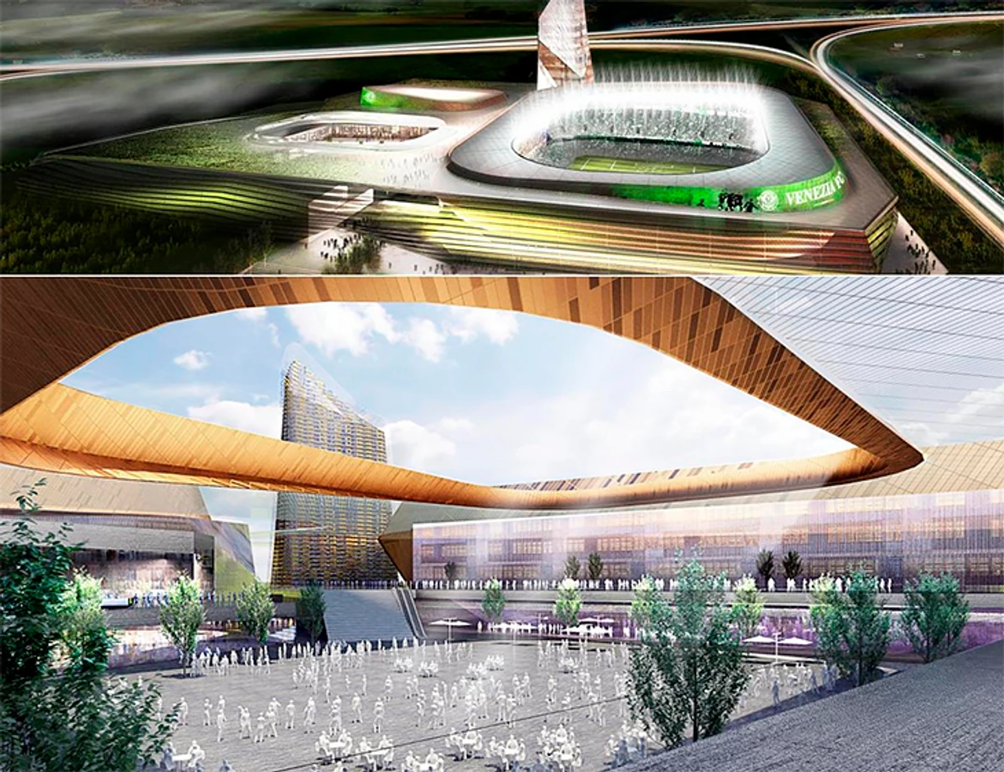 Все локации объединены общими стенами. Сверху пространство напоминает гигантский квадрат с выемками в виде пузырей под стадион, площадь перед магазинами и амфитеатр. Все это займет 300 тысяч квадратных метров. Дорогу и железнодорожную станцию построит муниципалитет. Там уже посчитали, что комплекс принесет городу минимум 10 тысяч рабочих мест и миллионы евро в виде налоговых поступлений.