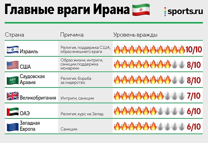 Кроме рекорда по количеству санкций, у Ирана огромный список недружественных стран. Причем такие есть не только в Европе или Америке, но даже среди исламских государств.
