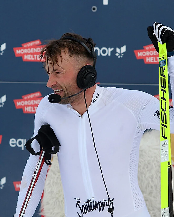 Он начинает год без похмелья, работая экспертом на TV2 – с планами тайком пробраться на тренировку после гонки элитных лыжников в Валь-ди-Фьемме.