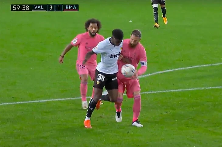 Третий пенальти: «Очевидное нарушение со стороны Рамоса».