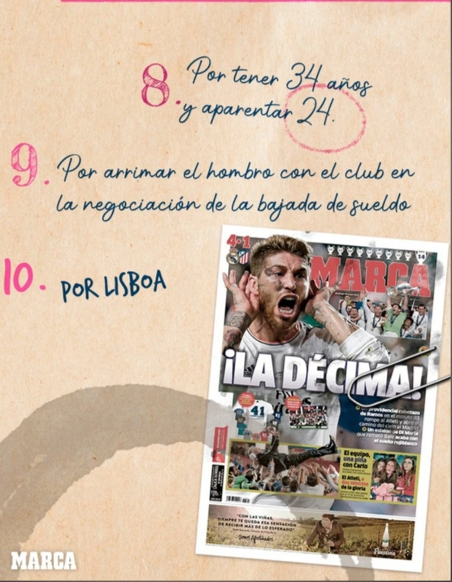 Marca грандиозно призналась в любви Рамосу. На первой полосе – 100 причин продлить контракт Серхио с «Реалом»