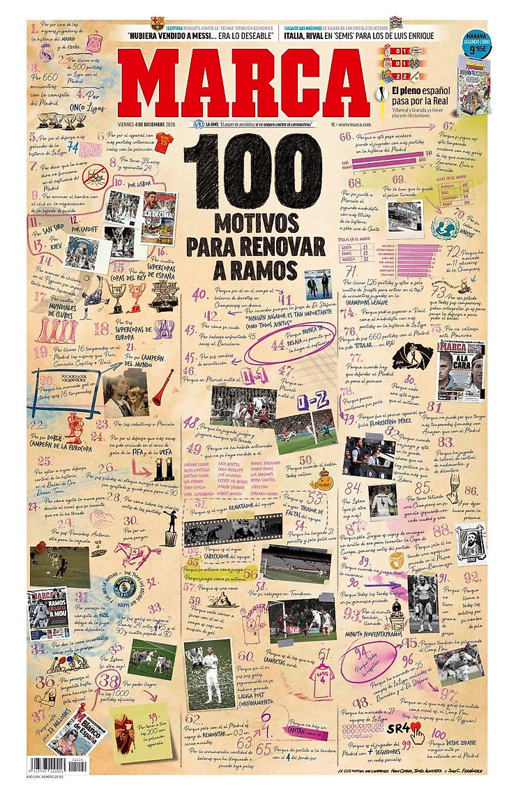 В пятницу мадридское издание Marca выкатило обложку, которая войдет в историю. На первой полосе – масштабный коллаж, объясняющий, почему «Реалу» нужно продлить контракт с Рамосом любой ценой.