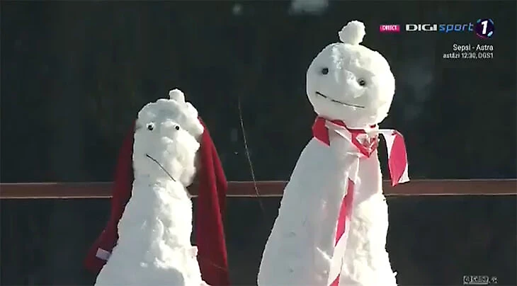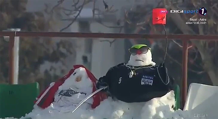 В Румынии болельщиков заменили снеговики ☃️ Да-да, снеговики – в клубных шарфах и шапках!