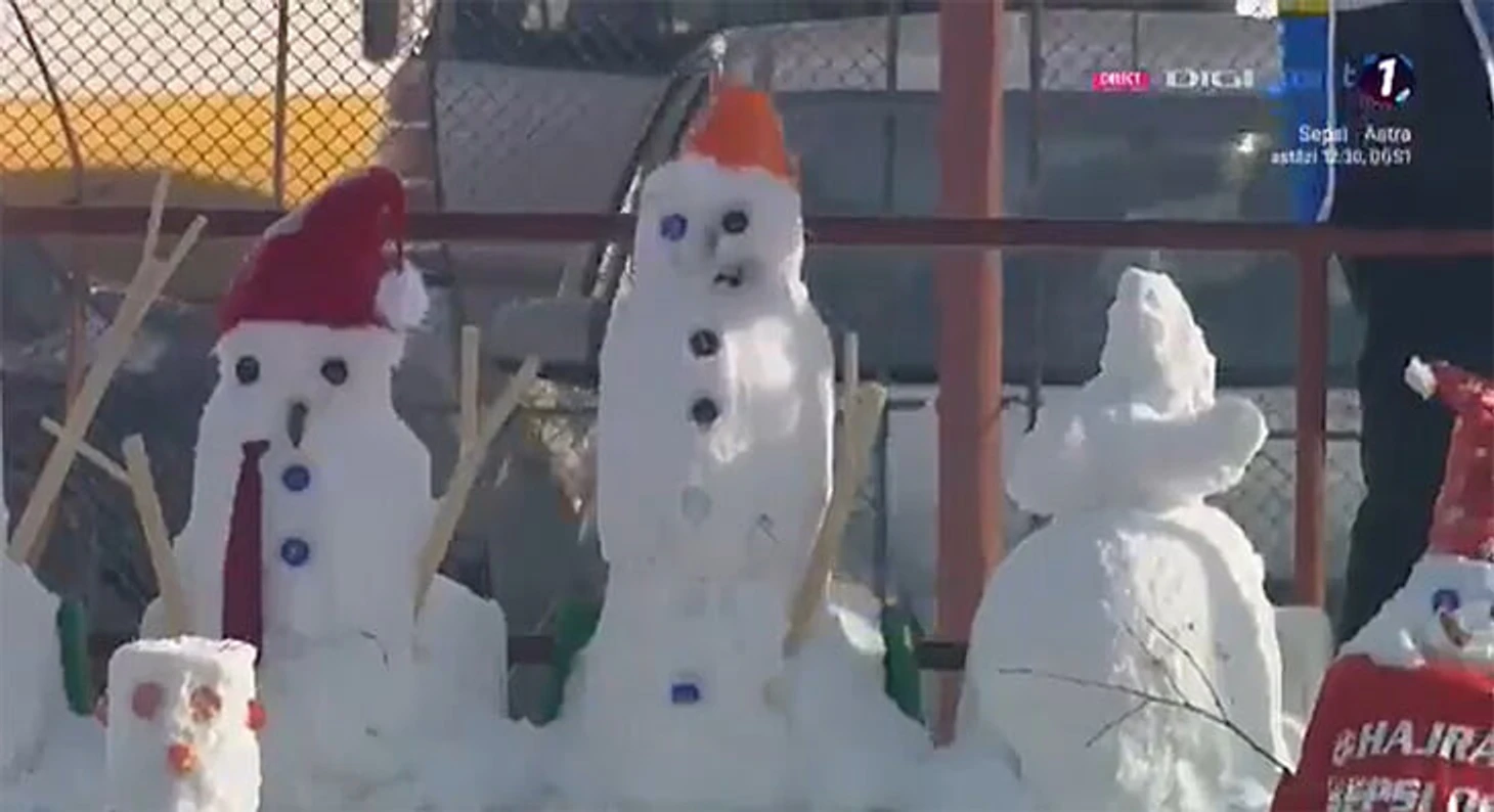 Новое чудо произошло на стадионе клуба «Шепши» в небольшом городе Сфынту-Георге. Там появился целый сектор, в котором команду поддерживали снеговики.