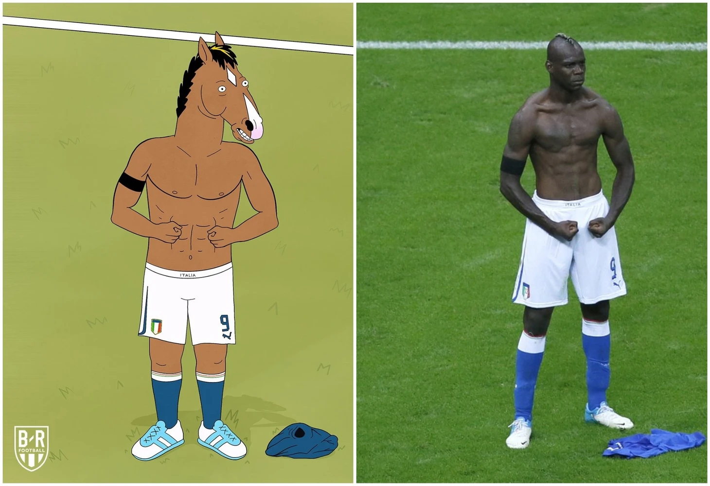 Еще одно легендарное празднование – Марио Балотелли в полуфинале Евро-2012. Кажется, сериал про коня БоДжека продержался на высоком уровне дольше (6 сезонов), чем сам Марио.
