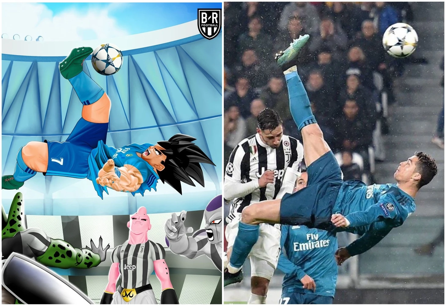 Про Месси уже сказали – на очереди Криштиану и его великий удар через себя в матче с «Ювентусом». Мультфильм, если не узнали, DragonBall Z – там тоже были впечатляющие драки и акробатика.
