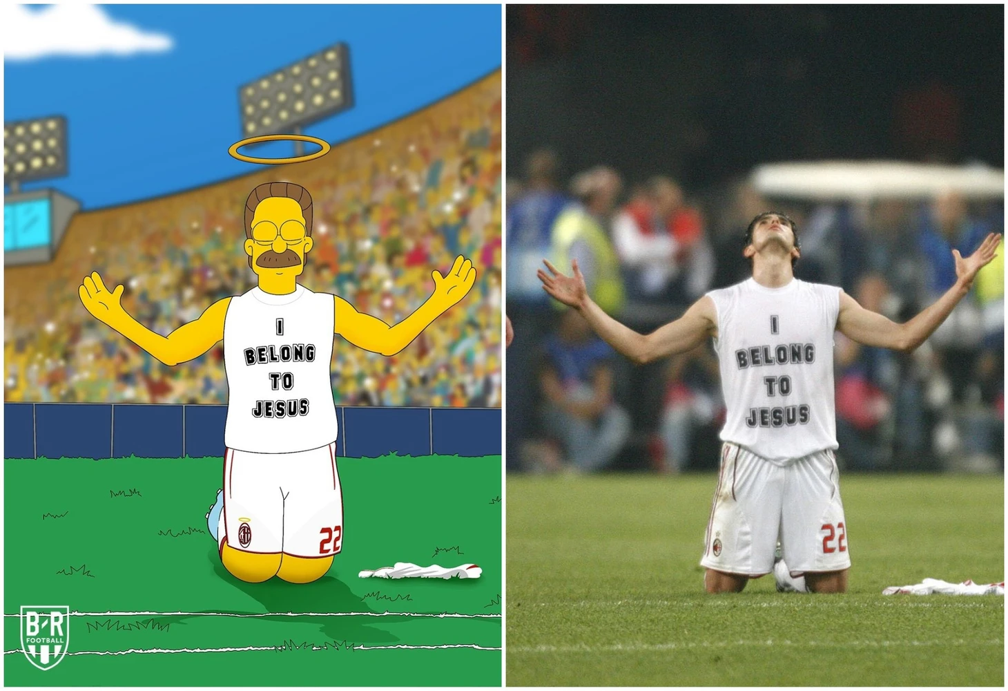 2007 год. Кака только что выиграл Лигу чемпионов, в финале обыграв «Ливерпуль». И ходил по полю с кубком и в футболке «Я принадлежу Иисусу». Есть ли в мультфильмах более религиозный персонаж, чем Нэд Фландерс – так что выбор очевиден.