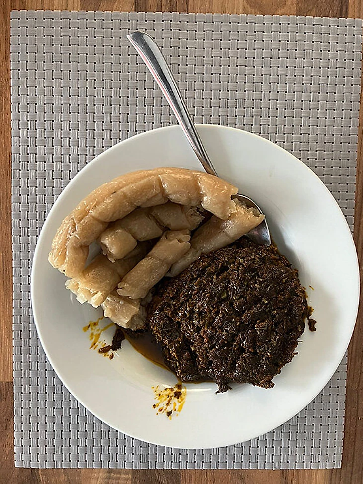 А так выглядит наш домашний окок – готовится из муки, сахара, овощей и пальмового масла.
