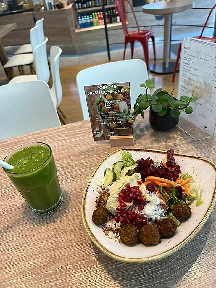 Мне нравятся блюда из киноа, авокадо и моркови. Особенно с добавлением сладкого веганского соуса. Вареная картошка – тоже класс! Попить я беру морковный или огуречный чай матча. Смешаешь его с лимоном – станет еще вкуснее!