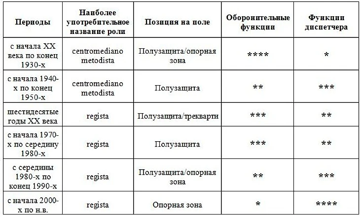 За последние сто лет менялись не только функции методисты/реджисты, но и их позиция на поле. Вот несколько примеров: