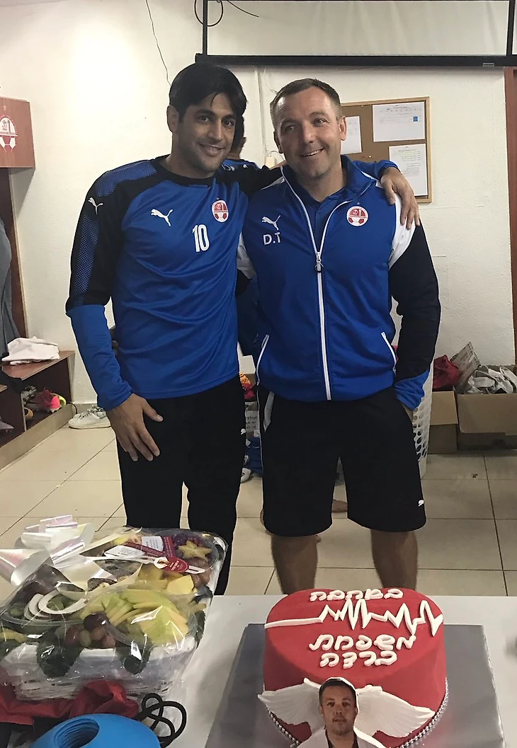 А Барда попал под раздачу Оханы, который на тренеровке на базе команды в Лехавиме пробил со всей дури и попал возврастному (35) форварду в грудь. Сбой дыхания, перебои с сердцем, потеря сознания, остановка сердца. Дальше все сложилось сказочно удачно. Массажист команды Дима Терещенко начал оживлять пострадавшего. Вызвали скорую, и один "амбуланс" оказался рядом, на перекрестке Гораль (на иврите - судьба). Подъехали быстро, приступили к реанимации, после четвертого удара электрошокера сердце забилось. Всего семь минут провел на том свете. Бегом в больничку Сорока, обследовали, сделали шунтирование... Короче, Барда уже выписался. И поздравил своего спасителя с днем рождения.