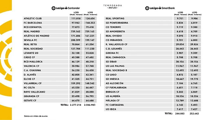 Барса – единственная команда Ла Лиги с отрицательным потолком зарплат. У каталонцев он составляет -144 миллиона евро. Согласно статье 100, это означает, что клуб может потратить на новичков только 25% от освобожденной суммы из зарплатной ведомости. Например, если Барселона покупает игрока с зарплатой в 5 миллионов, то, соответственно, она должна высвободить из ведомости 20 миллионов. В текущих реалиях это аналогично трансферному бану.