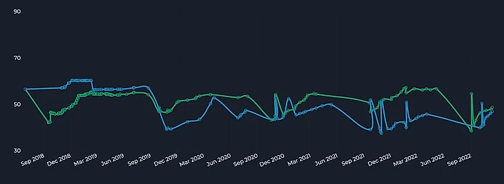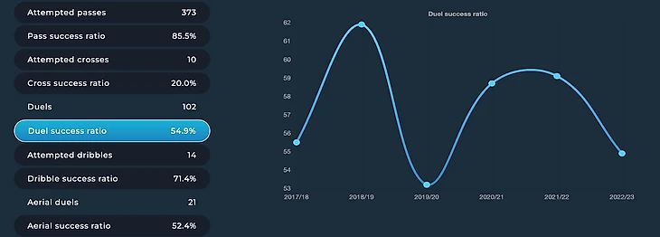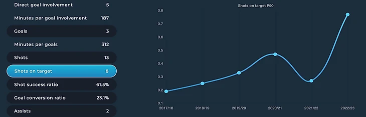 Довольно интересно посмотреть на развитие всех перечисленных показателях в динамике у обоих футболистов. Возьмем 2018 год - как раз, когда оба футболиста заявили о себе в европейском футболе. Милинкович-Савич развивался не быстро, но последовательно, его динамика гораздо устойчивее и почти лишена резких спадов и подъемов. Он стабилен как игрок, но здесь явно сказывается игра за один и тот же клуб все это время.