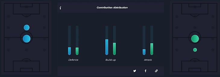 Однако, если рассматривать не общий фон воздействия на игру на поле, а именно аккуратность и точность исполняемых действий, здесь преимущество за Рабьо. Он точнее пасует, чаще перехватывает, успешнее обводит. Каждое его действие, будь то удар по воротам, передача, обводка или перехват - чаще будет исполнена, нежели у Сергея, но за сербом остается количество совершаемых действий. У Сарри весь функционал распределен детально за каждым игроком в зависимости от его индивидуальных особенностей. То бишь Сергей - двигатель команды, поэтому он чаще ошибается ввиду большего количества попыток. Рабьо лишь недавно взял на себя роль главной двигательной силы центра поля, поэтому обычно он предпочитал количеству качество - сыграть проще, но безошибочно.