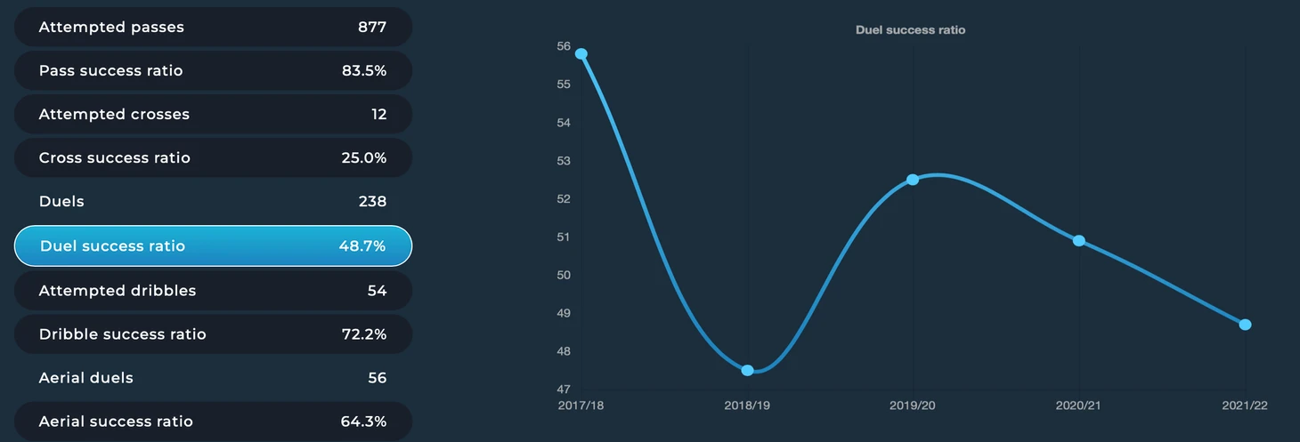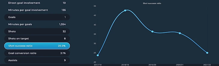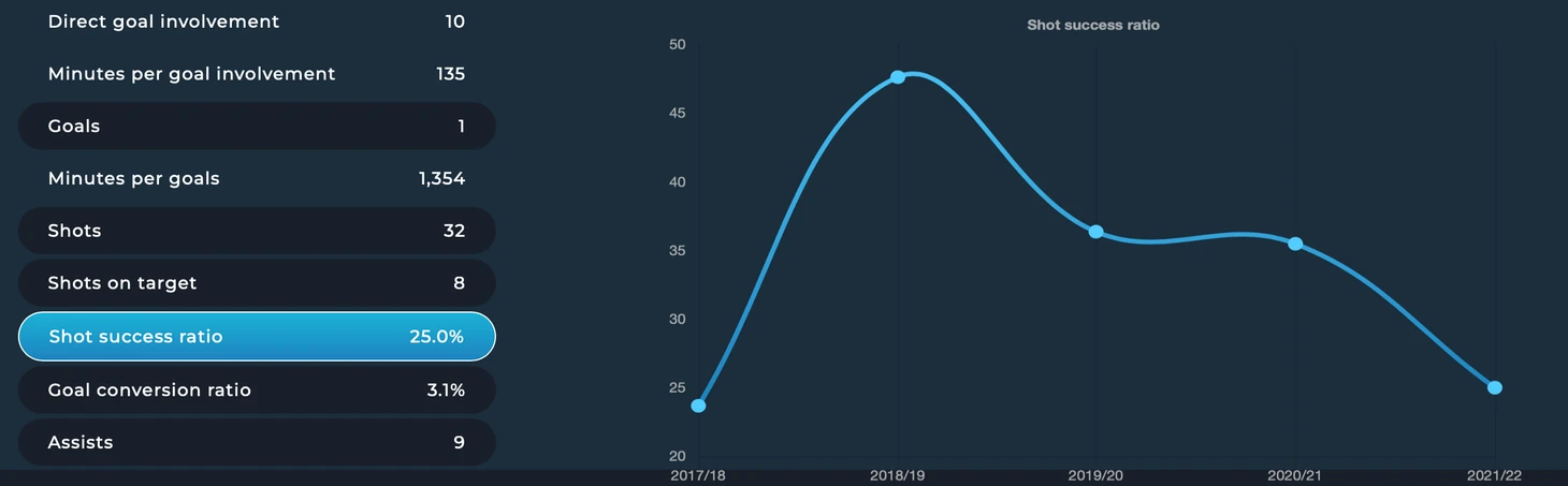 Большинство фанатов банально забывает, чем именно игрок был раньше настолько хорош и для чего он нужен Ювентусу. Его ключевые характеристики (точность передач, частота ударов по воротам, успешный кросс и успешный дрибблинг, передачи в атакующую треть поля) неизбежно снижаются из года в год, ввиду все более частого отсутствия.
