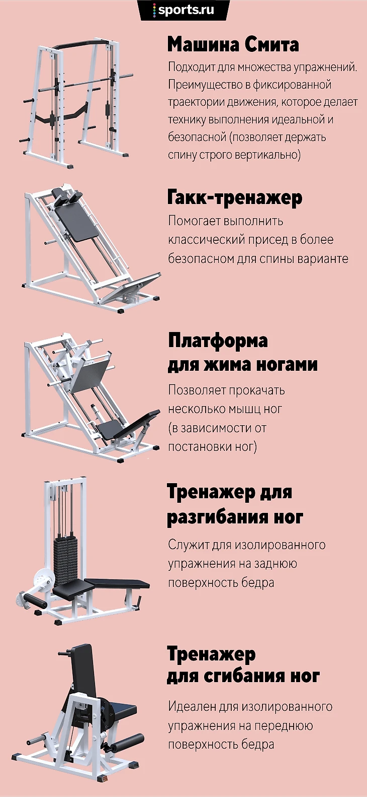 Как вообще тренировать ноги? Короткий ликбез: виды упражнений, типы тренировок и нужные тренажеры