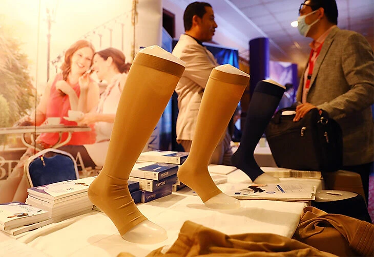 Важной частью лечения тромбозов поверхностных вен является ношение компрессионного трикотажа. Компрессионное белье формирует «внешний каркас» вокруг пораженной конечности, предотвращая избыточное растяжение стенки вен, снижают вероятность отрыва тромба. Подбирать компрессионные изделия должен врач или консультант-специалист в индивидуальном порядке.
