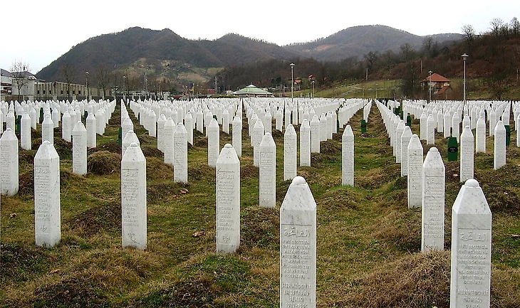 В Пасхальный понедельник 1993 года сербы начали обстрел Сребреницы, небольшого городка примерно в двух часах езды от Сараево. До войны его население составляло около 8000 человек, но с притоком беженцев, спасавшихся от этнических чисток в окрестных деревнях, эта цифра выросла до 40 000, большинство из которых жили в тяжелых условиях. В ходе двадцатиминутной бомбардировки сербы обстреляли всю главную улицу, убив пятьдесят шесть человек, несколько из которых были детьми, игравшими на футбольном поле близлежащей школы. У одного мальчика, мрачного символа войны, от силы ударных волн лопнули глазные яблоки. Луис Джентиле, единственный представитель УВКБ ООН, оставшийся в городе, рассказал, что видел тело, свисающее с окружавшего школьный двор забора. СООНО вывели свои войска и объявили Сребреницу «безопасным районом». Западные правительства, однако, выделили лишь пятую часть сил, которые, по оценкам, были необходимы для создания подобной зоны. В июле 1995 года, предположительно реагируя на нападение партизан с территории, которая теоретически была демилитаризованной зоной, сербы подвергли бомбардировке Сребреницу и захватили ее. Затем было систематически убито 8500 боснийских мужчин.