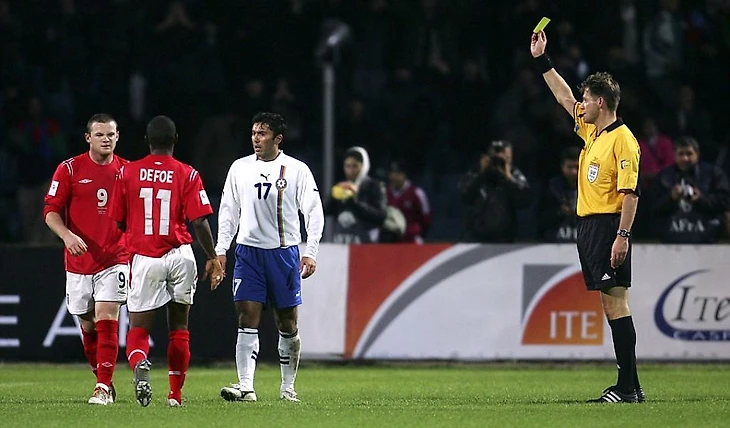 Судьям сейчас платят в пять раз больше, чем во времена Мусаева, и в результате они тоже, похоже, менее склонны принимать финансовые стимулы. Не менее важно, как с тренерской, так и с символической точки зрения, что в феврале 2004 года Карлос Альберто Торрес, автор потрясающего удара правой ногой, который привел к победе сборную Бразилии в матче с Италией со счетом 4:1 в финале чемпионата мира 1970 года, был назначен тренером сборной. Однако деньги для финансирования этих двух инициатив должны были откуда-то взяться, и, похоже, по крайней мере частично, они поступили из фонда для выплаты бонусов национальной сборной. Во времена Мусаева они обычно получали $3 тыс. за игру, но даже если бы они обыграли сборную Англии, игроки получили бы всего $2 тыс. Это неизбежно вызвало недовольство некоторых игроков, в первую очередь вратаря Дмитрия Крамаренко. За неделю до приезда сборной Англии он объявил, что больше не будет играть за национальную сборную, пока Мирзоев остается президентом АФФА, что, по крайней мере, дало толпе возможность насладиться маниакальным размахиванием руками Гасанзаде.