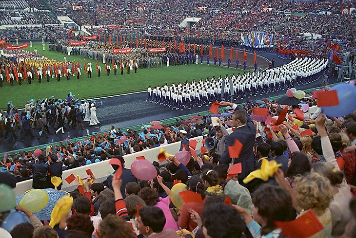 Павлов вскоре бросил учебу. Зато быстро продвигался по линии Комсомола: в 26 лет возглавил столичное отделение, а через четыре года рулил уже на всесоюзном уровне. В 1957-м он помогал организовать Всемирный фестиваль молодежи и студентов. Это было первое событие такого масштаба в СССР – Москва открылась для десятков тысяч гостей из 130 стран. Пацифистский посыл фестиваля сильно контрастировал с угрожающей риторикой холодной войны, он стал важным культурным явлением оттепели. А еще у него была спортивная программа: в Москве прошли соревнования легкоатлетов, волейболистов и теннисистов.