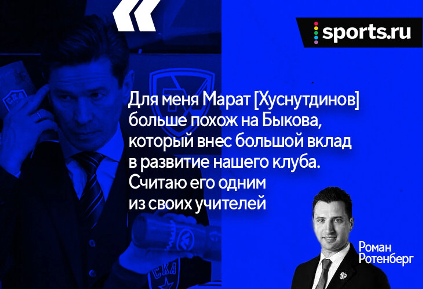 Совсем недавно мы выловили самое популярное слово в речи Романа Ротенберга. Но у главного тренера СКА есть и другие лексические привычки: например, публично высказываться о людях, которые сильно повлияли на него в тренерской профессии.