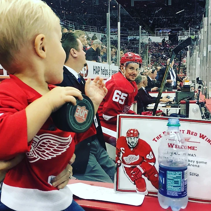 У младшего брата Лайлы тоже теперь есть кадр с хоккеистом – родители сняли его на фоне Дэнни ДеКайзера.