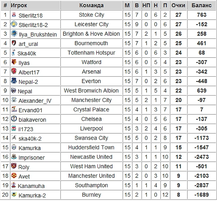 К сожалению по итогам прошлого сезона, хоть Сток и забрал чемпионство у нас в турнире, но вот в реальности вылетел, показав в последних турах прямо неумение забивать..