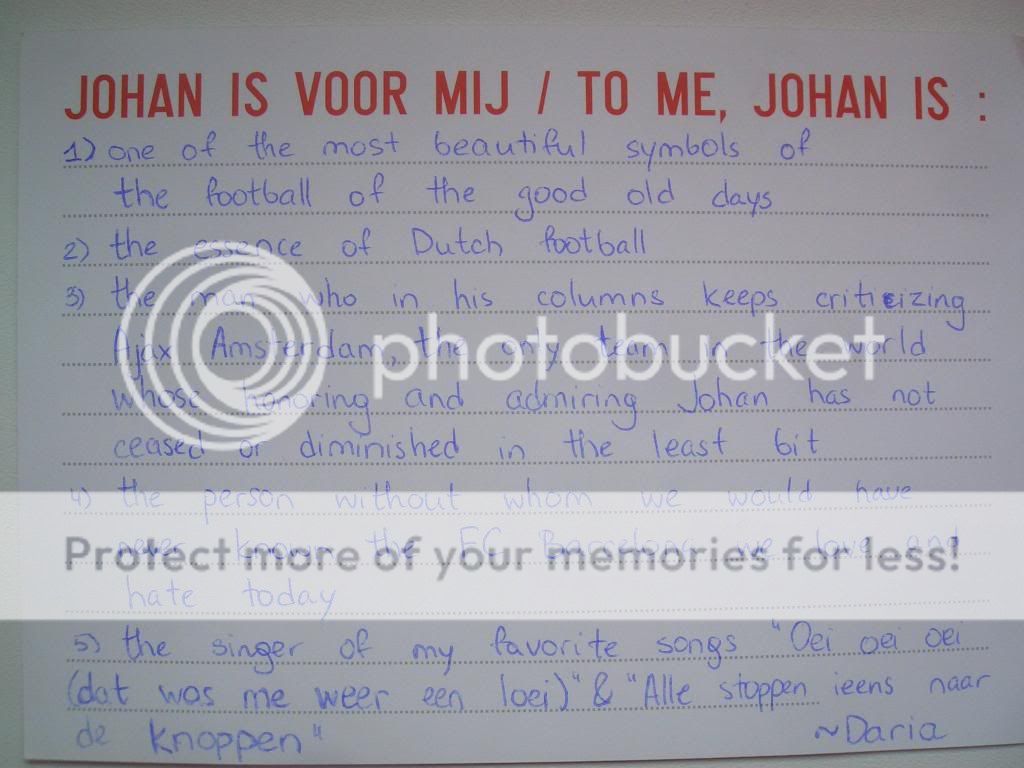 На самом деле все началось с открывшейся в Амстердаме выставки, посвященной Кройффу. Там можно написать на открыточке, кто для тебя Йохан, повесить открытку в специально отведенном месте, ну и таким образом тоже немного стать частью выставки :)