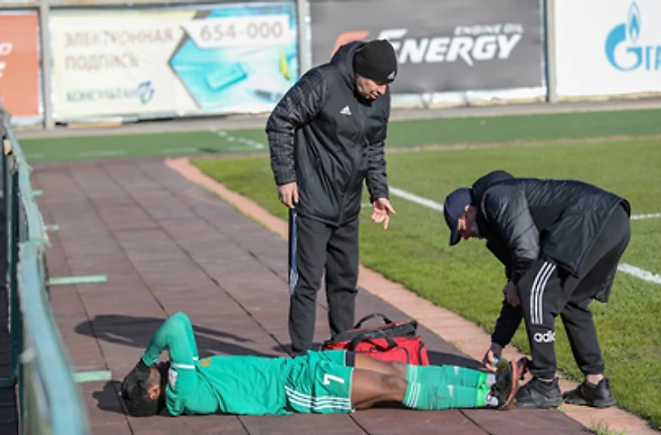 Наконец, выходят футболисты. В это же время по стойке «смирно» у бровки уже находится главный тренер «Томи» Александр Кержаков, нервно грызущий ногти. В таком темпе ему вряд ли останется что-то на второй тайм. Свисток, и матч стартует.