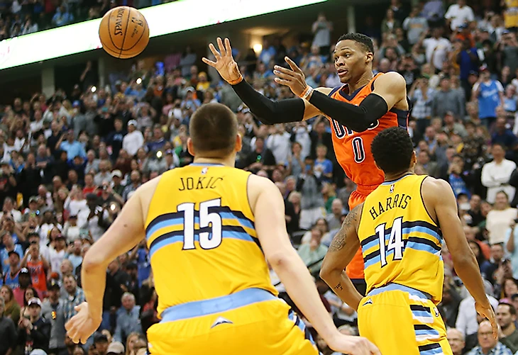 Конечно, нынешний год стал годом поражающих протоколов. Но в данном случае это не было похоже ни на что другое: последние две недели Уэстбрук провел так, чтобы донести до всех свои притязания на MVP, и ему не хватало лишь такого момента тотального безумия, который мы будем вспоминать и через 10 лет. Болельщики реагировали соответствующим образом, откликаясь на подвиги Расса в режиме прямого времени: с восклицательными знаками, капслоком, странными гифками и всем тем, что делает твиттер жизненно необходимым. В течение трех минут я смотрел, как Уэстбрук завалил мяч по сумасшедшей траектории, после чего оказался в объятиях партнеров. Это была идеальная концовка спортивного фильма, которой не хватало разве что «Взрывов в небе». Чуть позже появилась отпадная фотография Уэстбрука, празднующего бросок – летящего в воздухе, со сжатыми кулаками и лицом, на котором было написано «Fuck you». И на фоне этого лица болельщиков «Наггетс»: они реагировали так, словно их машины эвакуировали в данный момент.