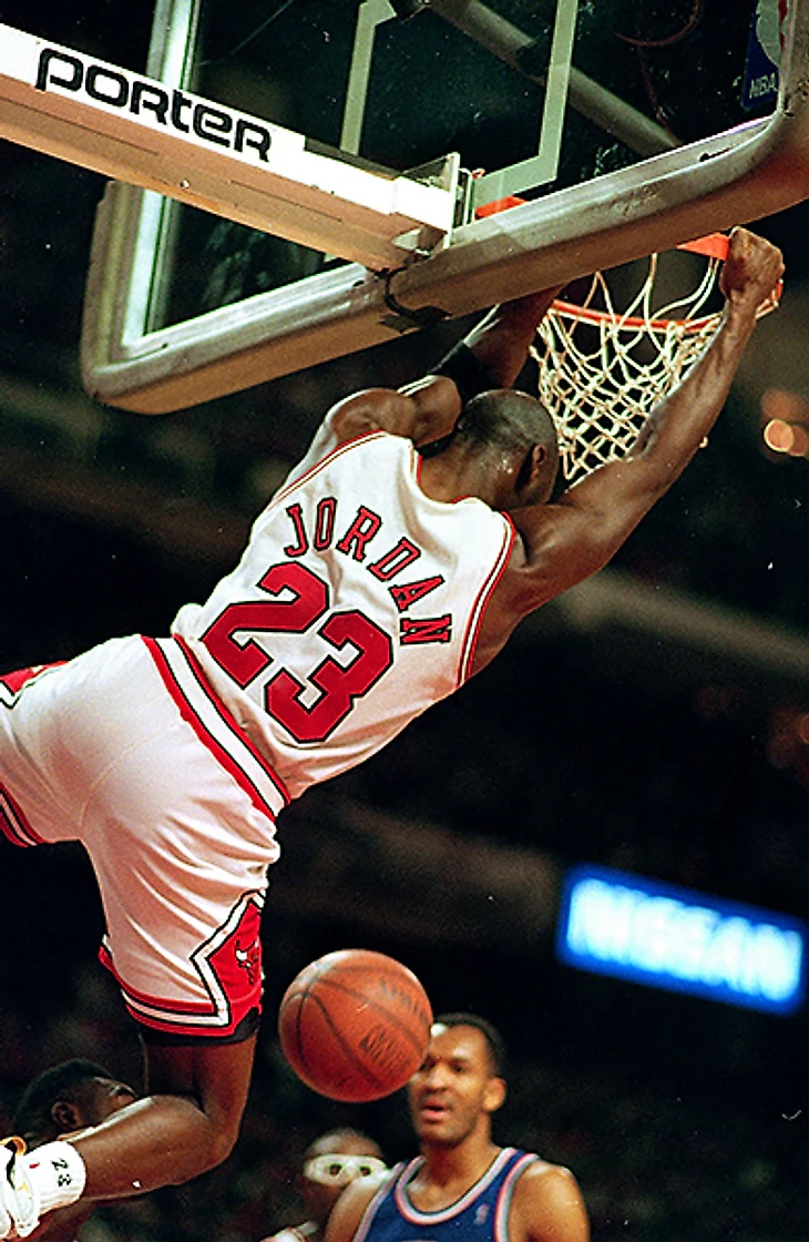 Майкл Джордан принимает эстафету в качестве следующей великой суперзвезды лиги, бьет все рекорды по средней результативности, исключая Уилта (37,1 очка), и становится вторым игроком в истории (по сей день), который набрал больше 3000 очков за один сезон. И он финиширует… вторым!