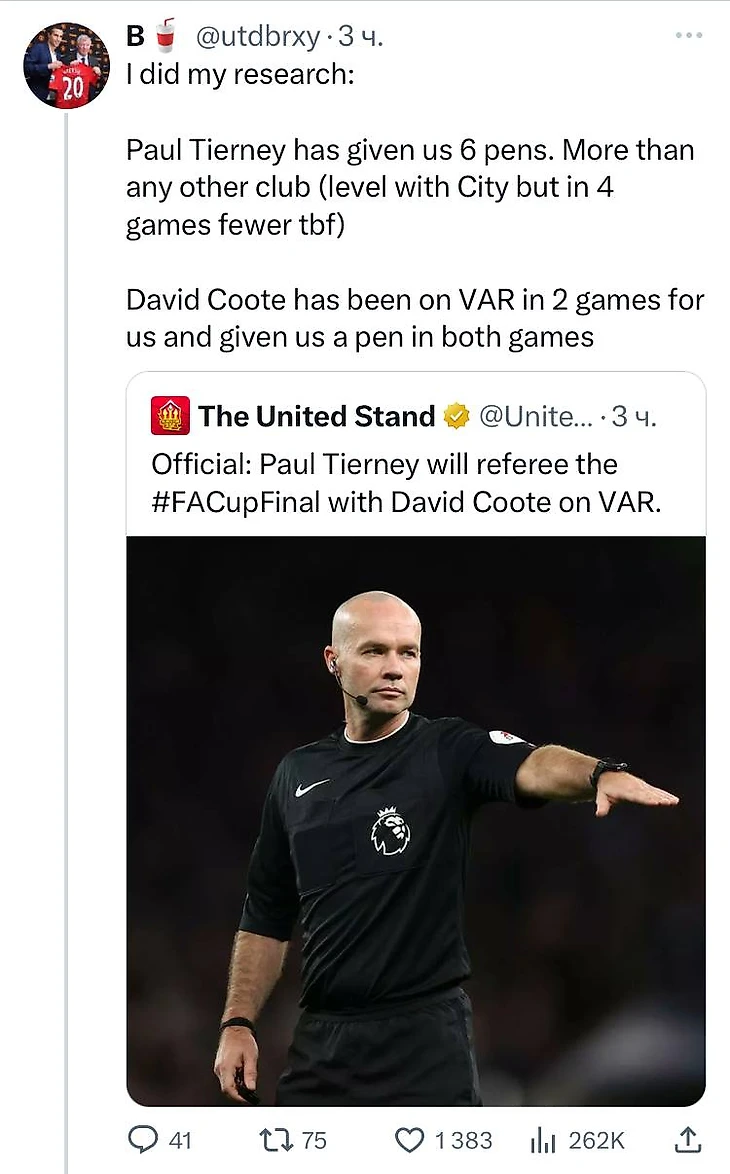 🧐Помогает «Юнайтед»? У болельщиков «Сити» возникли вопросы к судье финала Кубка Англии