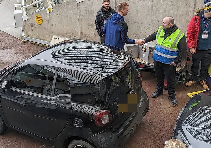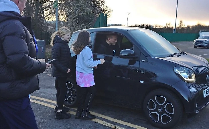 Фанаты сфоткали Берна в его авто около клубной базы, пока защитник раздавал автографы.