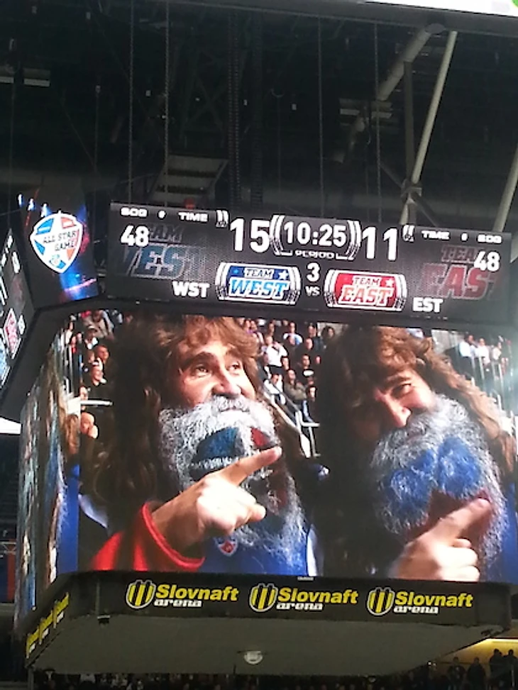 Организаторы Матча Звезд свезли в Братиславу почти всех маскотов клубов КХЛ. В перерыве маскоты устраивают постановочную драку, срывая чуть ли не больше аплодисментов, чем любой из участников игры. Уже по пути со стадиона выясняется, что все они живут в одной гостинице. Пешком от «Словнафт Арены» до нее минут семь – один идет по улице прямо в нижней части своего костюма.