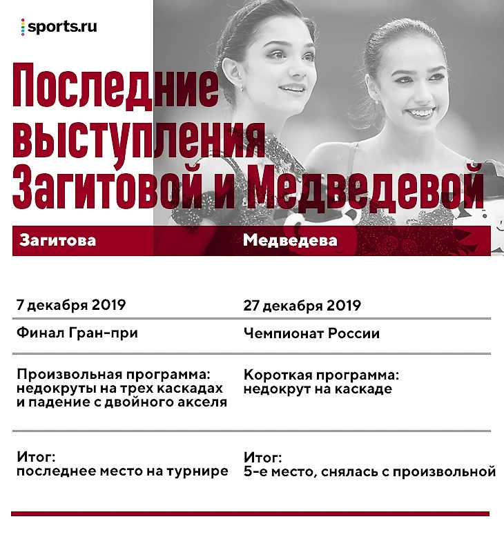 А вы не забыли, когда Загитова и Медведева катались в последний раз? Алина сорвала программу, Жене помешал сломанный ботинок