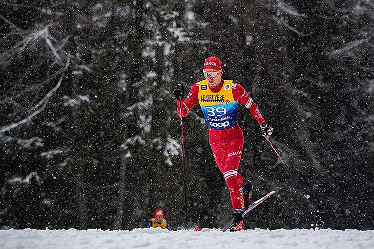 В начале декабря Александр после неплохого старта выключался в середине дистанции. В этот раз после отметки в 5 км Большунов расположился на втором месте и продержался до самого финиша без провальных отрезков.