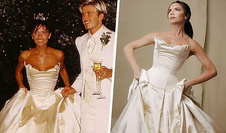 Одно из самых известных платьев дизайнера – свадебный наряд Виктории Бекхэм: атласная ткань, корсет и пышная юбка смотрелись невероятно. Через 20 лет Виктория снова надела его для фотосессии в Vogue, и оно все такое же потрясающее, как и в 1999-м.