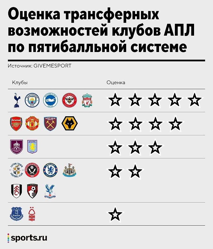 Даже с таким скучным зимним окном АПЛ уверенно лидирует по трансферным расходам в сезоне-2023/24 – 2,5 млрд фунтов. Это второй результат в мировой истории. Первый, конечно, тоже у АПЛ – предыдущий сезон (2,78 млрд).