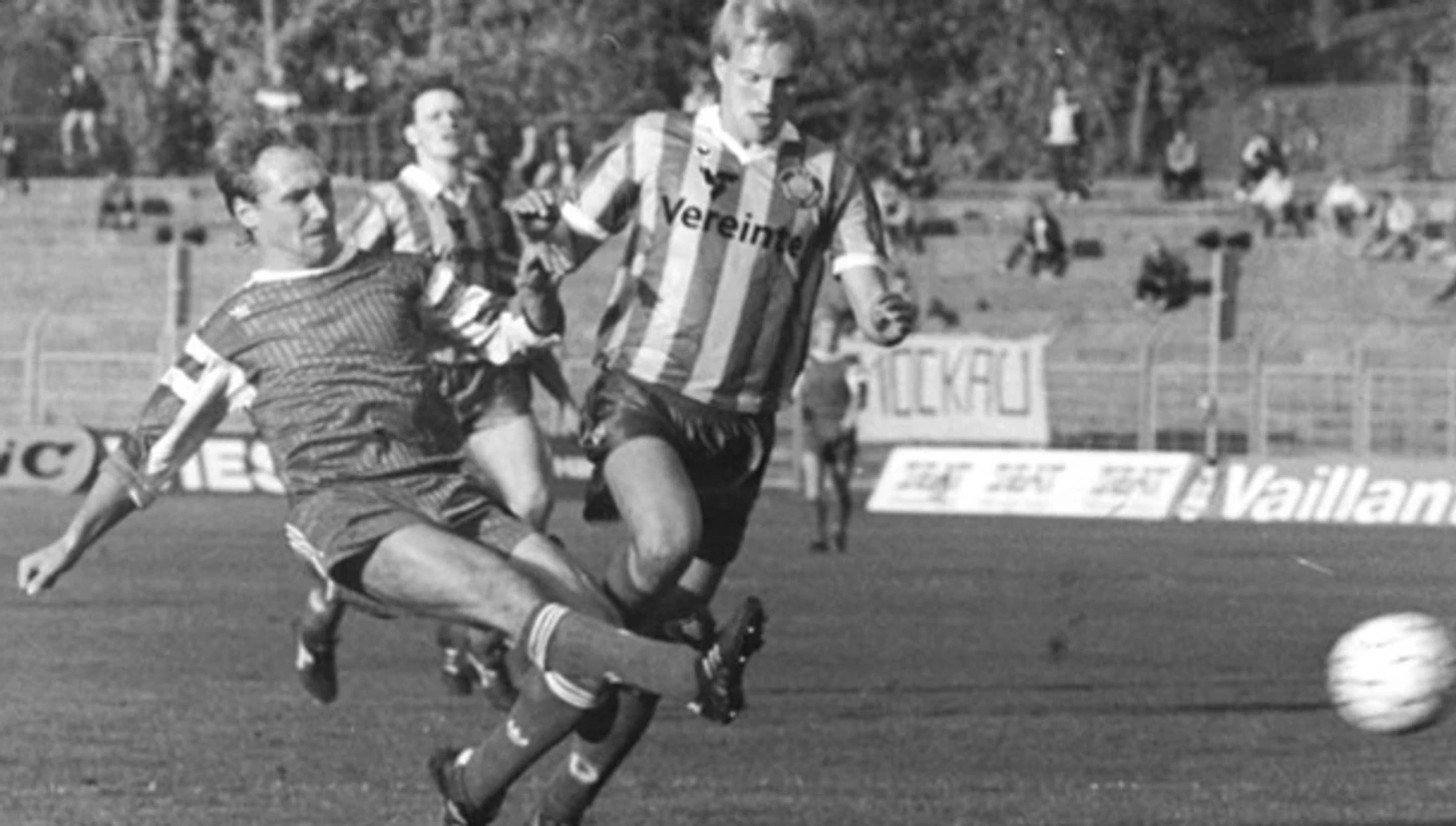 Кощунством было бы не вспомнить польского немца Дамиана Халату, забившего шесть мячей за сезон, что стало вторым показателем в составе. К сожалению, вскоре нападающий получил травму и перестал играть, но в клубе ему быстро нашлось место. К 1994 году Халата уже успел дорасти до главного тренера. Фотоснимок выше — матч против бранденбургской «Штали» в 1989 году.