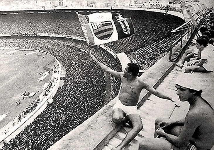 Кадр из 80-ых, когда чтобы посмотреть на Зико сотоварищи болельщики залазили на крышу
